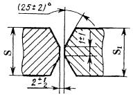 11.2.4 Для ручной дуговой сварки разнородных сталей применяются электроды в соответствии с таблицей 8.1, содержание никеля в которых зависит от температуры эксплуатации. Допускается применять электроды, имеющие более высокое содержание никеля, чем указано в таблице. 11.2.5 При РДС разнородных сварных соединений, эксплуатируемых при температурах до 400°С, как правило, применяются электроды типа Э-10Х25Н13Г2. В этом случае, необходимо принимать меры по ограничению проплавления не аустенитной стали, используя электроды малого диаметра и минимально допустимые режимы сварки (доля участия не аустенитной стали не должна превышать 30 %), или производить наплавку этих кромок электродами типа Э-11Х15Н25М6АГ2. 11.2.6 После наложения каждого валика необходима тщательная зачистка его от шлака. 11.2.7 Зажигание сварочной дуги производится в разделке шва или на наплавленном металле. Кратер шва должен тщательно заплавляться частыми короткими замыканиями электрода. Выводить кратер на основной металл запрещается. 11.2.8 При смене электрода или случайных обрывов дуги зажигать ее вновь следует, отступив на 15-20 мм назад от кратера и предварительно зачистив в этом месте шов от шлака и окалины. 11.3 Автоматическая сварка под флюсом11.3.1 Рекомендуемые конструктивные элементы подготовки кромок, а также типы и размеры сварных швов, ориентировочные режимы автоматической сварки под флюсом приведены в таблицах 11.11 - 11.16. Если толщина свариваемого соединения превышает значения, указанные в таблицах, то следует руководствоваться ГОСТ 8713. 11.3.2 Автоматическая сварка под флюсом производится на всю длину шва. После выполнения каждого прохода осуществляется его очистка от шлака, при этом шов и прилегающая к нему зона подвергаются тщательному визуальному контролю с целью выявления трещин и других дефектов. В случае их обнаружению они устраняются. 11.3.3 Начинать и заканчивать сварку продольных стыков необходимо на выводных планках. Длина участка шва на планках должна быть не менее 100 мм. 11.3.4 Выводные планки изготавливаются: - из менее легированной стали при сочетании сталей перлитного класса или перлитного класса со сталями мартенситного класса; - из аустенитной стали типа 12Х18Н10Т при использовании аустенитных сварочных материалов или сплавов на железо-никелевой (никелевой) основе. 11.3.5 Автоматическая сварка кольцевых швов выполняется на вращателе, который должен обеспечивать вращение без рывков и поперечных колебаний. Таблица 11.2 - Ручная дуговая сварка стыковых соединений с односторонним скосом двух кромок односторонним швом