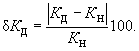 где Us - показание вольтметра, подключенного к выходу вихретокового вибропреобразователя с устройством преобразования (драйвером), мВ; SД - виброперемещение, задаваемое поверочной виброустановкой, мкм. Действительное значение коэффициента преобразования вибропреобразователя, имеющего выходной унифицированный сигнал постоянного (переменного) тока Kд, мА/единица физической величины, вычисляют по формуле где АД - действительное значение воздействующей на вибропреобразователь физической величины (виброускорения, м/с2, виброскорости, мм/с, виброперемещения, мкм); IA, IСМ - измеренное значение тока на выходе вибропреобразователя и тока смещения, мА. 10.11.5 Действительное значение коэффициента преобразования вихретокового вибропреобразователя, вычисленное по формуле (32) и относящееся к режиму измерения виброперемещений, принимают одним и тем же для измерения медленно меняющихся (квазистатических) перемещений и статических положений (зазоров). Примечание - Допускается определение действительного значения коэффициента преобразования вихретокового вибропреобразователя статическим методом по формуле (32). В этом случае действительное значение виброперемещения SД заменяют на действительное значение статического положения (зазора) SCT, которое задают с помощью устройства для поверки вихретоковых вибропреобразователей в статическом режиме. 10.11.6 Если действительное значение коэффициента преобразования пьезоэлектрического вибропреобразователя более 100 мВ/(м·с-2) [пКл/(м·с-2)], то допускается его определение при меньших значениях виброускорений, обеспечивающих работу согласующего усилителя без перегрузки по входу (выходу). Если действительное значение коэффициента преобразования пьезоэлектрического вибропреобразователя менее 0,1 мВ/(м·с-2) [пКл/(м·с-2)], то его определяют на базовой частоте от 80 до 1000 Гц при виброускорении 100 м/с2 или более. 10.11.7 Относительную разность между действительным значением коэффициента преобразования Kд, определенным по одной из формул (29) - (33), и номинальным значением Kн, указанным в паспорте вибропреобразователя δKД, % , определяют по формуле