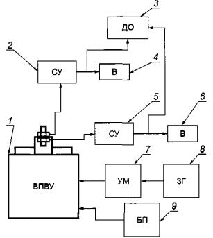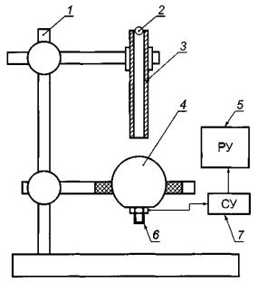 1 - вибропреобразователь; 2 - вольтметр; 3 - нагрузочный резистор; 4 - миллиамперметр; 5 - блок питания (БП) Рисунок 1 - Обобщенная схема для определения начального рабочего напраяжения (тока) вибропреобразователей с выходом по напряжению (току) 10.10.2 Устанавливают и подают на вибропреобразователь указанное в паспорте напряжение питания и измеряют значение начального рабочего тока Iсм и начального рабочего напряжения UCM на выходе вибропреобразователя. 10.10.3 Значение начального рабочего напряжения (тока) вибропреобразователей должно соответствовать значению, указанному в паспорте вибропреобразователя 10.11 Определение действительного значения коэффициента преобразования вибропреобразователя10.11.1 Поверяемый вибропреобразователь устанавливают на вибростол таким образом, чтобы направление главной оси чувствительности вибропреобразователя совпадало с направлением колебаний вибростола. Поверяемый вибропреобразователь закрепляют на вибростоле поверочной виброустановки в соответствии с требованиями, установленными в руководстве по эксплуатации (для пьезоэлектрических вибропреобразователей должны быть выполнены требования ГОСТ ИСО 5348). Для индукционных и пьезоэлектрических вибропреобразователей предпочтительно крепление с помощью резьбовых соединений (шпилька, крепление фланца вибропреобразователя с помощью болтов), для вихретоковых - с помощью специального кронштейна для закрепления над вибростолом вибровозбудителя (см. 10.4.2). 10.11.2 В соответствии с руководством по эксплуатации подключают вибропреобразователь соединительным кабелем к вторичным приборам. Включают и прогревают вторичные приборы, а также измерительные и технические средства поверочной виброустановки. Выход пьезоэлектрического вибропреобразователя без встроенных согласующих электронных устройств подключают соединительным кабелем к входу согласующего усилителя, выход последнего - к входу вольтметра. Пьезоэлектрический вибропреобразователь с выходом по напряжению подключают непосредственно к вольтметру, с выходом по току - к миллиамперметру. Индукционный вибропреобразователь подсоединяют непосредственно к вольтметру. Вихретоковый вибропреобразователь подсоединяют к вольтметру через устройство преобразования (драйвер). Вибропреобразователь с выходом по току подключают к вольтметру по схеме, приведенной на рисунке 1. В зависимости от типа вибропреобразователя на вибростоле поверочной виброустановки задают действительное значение физической величины: - для пьезоэлектрического вибропреобразователя - виброускорение ад с амплитудой не менее 10 м/с2 на частоте от 20 до 1000 Гц (предпочтительна базовая частота, указанная в паспорте вибропреобразователя); - для индукционного вибропреобразователя - виброскорость Vд с амплитудой не менее 10 мм/с на базовой частоте от 5 до 200 Гц; - для вихретокового вибропреобразователя в динамическом режиме - виброперемещение Sд с амплитудой не менее 50 мкм на базовой частоте от 20 до 160 Гц. 10.11.3 Считывают показания вольтметра. Рекомендуется при определении коэффициента преобразования на каждой частоте при использовании поверочной виброустановки с неавтоматизированной обработкой информации проводить не менее трех измерений, автоматизированной установки - не менее 12, среднее арифметическое значение результатов и