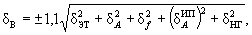 где 10.5.3.10 Если конструкцией виброметра предусмотрено измерение нескольких параметров вибрации (например, амплитуды и среднего квадратического значения), то относительную погрешность виброметра в рабочем диапазоне частот определяют для каждого значения измеряемого параметра. Если виброметр укомплектован несколькими вибропреобразователями, то операции по определению погрешности виброметра в рабочем диапазоне частот проводят для каждого вибропреобразователя. 10.5.4 Определение границ основной относительной погрешности виброметра 10.5.4.1 По результатам измерений по 10.5.2 и 10.5.3 определяют границы основной относительной погрешности виброметра δВ, %, при доверительной вероятности 0,95 по формуле