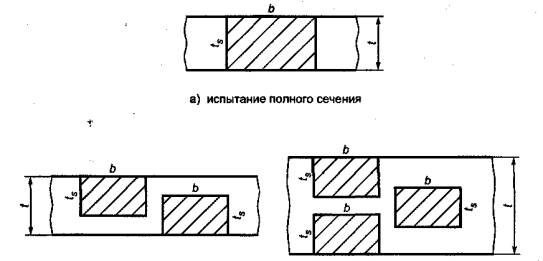 трубах с наружным диаметром D < 5.2 МаркировкаКаждый испытательный образец должен быть замаркирован так, чтобы после вырезки можно было точно определить его положение в конструкции или в контрольном сварном соединении. Если стандарт или другая техническая документация содержат требование о дополнительной информации, связанной с целью испытаний, по конструкции или технологии (например, направление проката, поковка и т.п.), это также учитывают при маркировке. 5.3 Термическая обработка и (или) старениеТермическую обработку сварных соединений или вырезанных испытательных образцов проводят только в тех случаях, если она предусмотрена технической документацией на контролируемое сварное соединение. Сведения о проведении любой термической обработки заносят в протокол испытаний. При испытаниях сварных соединений из алюминиевых сплавов, склонных к естественному старению, в протокол испытаний заносят время между сваркой и испытаниями. Примечание - Если при испытаниях сварных соединений сплавов на основе железа требуется исключить влияние водорода на результаты испытаний, то проводят дегазацию сварных соединений или испытательных образцов. 5.4 Требования к технологии вырезки испытательных образцов5.4.1 Общие требования Механические или термические процессы, используемые при вырезке испытательных образцов, не должны оказывать влияния на его механические свойства. 5.4.2 Сталь Рубка на ножницах допускается при толщине не более При использовании термической резки или других методов вырезки, которые могут повлиять на