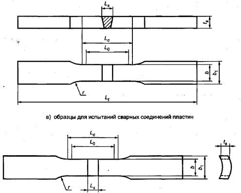 результаты испытаний, вырезку проводят с припуском на величину заготовки не менее Термическая резка по толщине сварного соединения параллельно свариваемым поверхностям не допускается. 5.4.3 Другие металлические материалы Термическая резка не допускается. Следует использовать только механическую обработку. 5.5 Механическая обработка испытательных образцов5.5.1 Общие требования Допуски на размеры испытательных образцов должны соответствовать ИСО 6892-1. 5.5.2 Расположение испытательных образцов по сечению сварного соединения Толщина испытательного образца ts должна быть, как правило, равна толщине основного металла рядом со сварным швом (см. рисунок 1а). Если требуется испытание всего сечения сварного шва