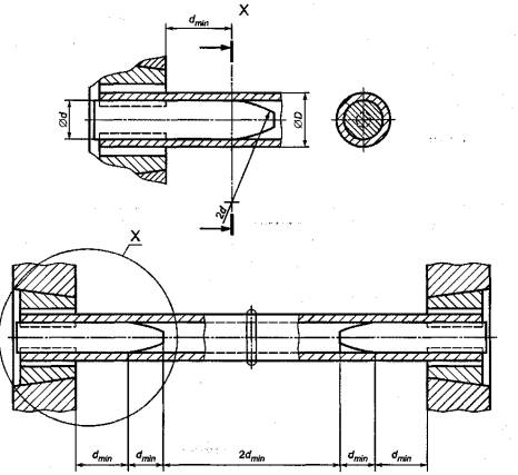 Рисунок 4 - Цилиндрические образцы для материалов высокой прочности 5.5.4 Требования к поверхности Окончательную механическую обработку необходимо выполнять на режимах, исключающих деформацию, перегрев или поверхностную закалку материала испытательного образца. На поверхности рабочей части Lc не допускаются царапины, забоины, надрезы, расположенные поперек оси образца, кроме подрезов сварного шва, допускаемых соответствующим стандартом. Если нет других указаний в стандартах или иной технической документации на изделие, выпуклости сварного шва с обеих сторон удаляют механической обработкой до уровня основного металла, за исключением выпуклости внутри трубы при испытании полного сечения труб. 6 Процедура испытанияПри испытании образец подвергают нарастающей нагрузке в соответствии с ИСО 6892-1. 7 Результаты испытаний7.1 Общие положенияРезультаты испытаний необходимо определять в соответствии с ИСО 6892-1. 7.2 Место разрушенияМесто разрушения указывают в протоколе испытаний. При необходимости место расположения сварного шва определяют травлением образца. 7.3 Контроль поверхности разрушенияПоверхность разрушения после испытаний образца должна быть обследована на наличие дефектов, которые могли повлиять на результаты испытаний. Вид дефектов и их размеры должны быть занесены в протокол испытаний. При наличии дефектов вида «рыбий глаз» они должны быть описаны в протоколе, при этом только их центральные области следует рассматривать как дефекты. 8 Протокол испытанийПротокол должен включать следующую информацию дополнительно к тому, что указано в ИСО 6892-1: a) ссылки на настоящий стандарт, т.е. на ГОСТ Р ИСО 4136; b) тип и место вырезки испытательного образца, эскиз, если требуется (см. рисунок 1); c) температура испытаний, если отличается от нормальной; d) место разрушения; e) типы и размеры обнаруженных дефектов. Пример формы типового протокола приведен в приложении А. Приложение А