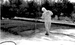 Рис. 1. Эмульсия наносится механизированным способом с помощью установки для безвоздушного напыления. Напыление осуществляется путем раздельной подачи под высоким давлением по шлангам к форсункам пистолета-распылителя (рис. 1) двух компонентов: непосредственно битумно-латексной эмульсии и коагулянта (водный раствор хлористого кальция).