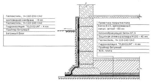Рис. 5. Конструктивное решение наружной гидроизоляции подвалов жилых зданий со стенами из сборных бетонных блоков Журнал «Ценообразование и сметное нормирование в строительстве», сентябрь 2010 г., № 9
