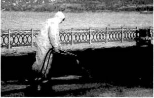 Рис. 1. Основные свойства «FLEXIGUM-HP»: - стабильность - равномерность нанесения мелкодисперсного материала в виде однородной мембраны; - эластичность - материал, усиленный латексом, становится исключительно эластичным, растяжение - 400%; - мобильность - комплектация шлангами до 150 м позволяет работать на отдаленных площадях и в труднодоступных местах; - безопасность - нетоксичен, наносится без нагрева, экологически безвреден. Технология устройства гидроизоляцииВ состав битумно-латексной эмульсионной мастики «FLEXIGUM-HP» входит вода, поэтому при транспортировке и хранении на складе эмульсия не должна подвергаться воздействию отрицательных температур. Температура хранения предусматривается от +5°С до +40°С. Эмульсия поставляется производителем в металлических бочках емкостью 200 л. Работы по устройству гидроизоляции выполняются при температуре воздуха не ниже +5°С. При необходимости возможно выполнение работ при температуре воздуха ниже +5°С под защитой тепляков и подогревом в них воздуха. Запрещается выполнять изоляционные работы при осадках на поверхности изолируемого основания. Особенностью устройства гидроизоляции из битумно-латексной эмульсионной мастики является ее высокая адгезия к основанию. Бетонную поверхность, на которую наносится гидроизоляция, необходимо очистить от строительного мусора, грязи и пыли сжатым воздухом от компрессора. Все швы должны быть заполнены цементным раствором. Гидроизоляцию наносят после набора прочности выравнивающим слоем бетона не менее 80% от проектной и влажности бетона не более 4%, во избежание термоудара при укладке асфальтобетонной смеси. Установка безвоздушного напыления битумно-латексной эмульсионной мастики состоит из двигателя внутреннего сгорания, двух насосов, двух гибких шлангов высокого давления на съемных катушках и пистолета-распылителя. Автономность и небольшой вес установки (250 кг) являются ее неоспоримым преимуществом. После работы шланги и пистолет-распылитель промываются керосином или дизельным топливом. Перед устройством гидроизоляции на поверхность наносится битумная грунтовка (0,45 кг/м2). Грунтовка может наноситься распылением с помощью установки безвоздушного напыления. В случае производственной необходимости для грунтования можно использовать компрессор производительностью не менее 5 м3/мин., который создает давление 0,5÷0,8 МПа. К нанесению гидроизоляции приступают через 2÷3 часа после нанесения грунтовки, но не позже, чем через 16 часов. Мастика и коагулянт подаются к месту работ в емкостях. Звено рабочих состоит из трех человек, один из которых наносит гидроизоляционный материал, второй помогает переносить шлаги по фронту работ, третий - обслуживает установку безвоздушного напыления. Распыление гидроизоляционного материала следует начинать с места, наиболее удаленного от установки и продвигаться по направлению к ней. В процессе работы шланги нужно переносить так, чтобы не повредить нанесенную гидроизоляционную мембрану. Для обеспечения отвода и быстрого высыхания выделяющейся в виде отдельных капель диаметром 0,1÷0,5 мм технологической влаги, распыление нужно начинать с наиболее низкого участка и двигаться к более высокому. Толщина гидроизоляционного слоя после стабилизации составляет 3 мм при расходе мастики - 5,3 кг/м2. Время стабилизации нанесенно