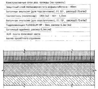 Гидроизоляция проезжей части мостовых конструкций битумно-латексной эмульсионной мастикой «FLEXIGUM-HP» Общие сведения о мастике «FLEXIGUM-HP»Битумно-латексная эмульсионная мастика «FLEXIGUM-HP» - это эмульсия, представляющая собой мелкодисперсную среду из двух взаимно нерастворимых жидкостей (битум и вода), из которых битум распределен в воде в виде частиц диаметром 5÷10 мкм. Битумные частицы покрыты тонким слоем эмульгатора, препятствующего обратному соединению в воде частиц битума. Благодаря введению в композицию полимерных добавок, гидроизоляционный слой после стабилизации имеет высокие физико-механические характеристики, в том числе выдерживает прямую укладку асфальта с температурой +160°С. Эмульсия наносится механизированным способом с помощью установки для безвоздушного напыления. Напыление осуществляется путем раздельной подачи под высоким давлением по шлангам к форсункам пистолета-распылителя (рис. 1) двух компонентов: битумно-латексной эмульсии и коагулянта (водный раствор хлористого кальция). При смешивании компонентов на выходе из форсунок происходит разрушение оболочки эмульгатора и под действием коагулянта мелкие битумные частицы слипаются друг с другом в более крупные и попадая на изолируемую поверхность образуют мембрану. После отделения технологической воды материал приобретает свойства и физико-механические показатели качественной бесшовной гидроизоляции.