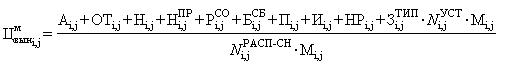 Hi,j - расходы на оплату налогов, сборов и компенсацию прочих затрат j-того генерирующего объекта в i-том году включающие: - страховые взносы в Пенсионный фонд Российской Федерации, Фонд социального страхования Российской Федерации, Федеральный фонд обязательного медицинского страхования и территориальные фонды обязательного медицинского страхования, определяемые исходя из расходов на оплату труда, учтенных в составе типовых прочих эксплуатационных расходов генерирующего объекта АЭС; - налог на прибыль; - налог на имущество. Определение расходов на оплату налогов и сборов осуществляется в соответствии с налоговым законодательством Российской Федерации. При определении налогооблагаемой базы по налогу на прибыль учитывается: - разница между бухгалтерской и налоговой амортизацией; - расходы на пополнение оборотных средств для приобретения свежего ядерного топлива, включая затраты на первую топливную загрузку. Оi,j - расходы на мероприятия по охране j-того генерирующего объекта в i-том году; ПНРi,j - расходы на пусконаладочные работы под нагрузкой j-того генерирующего объекта в i-том году;