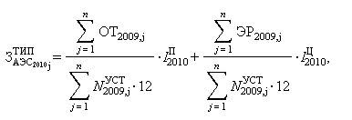 14. Типовые прочие эксплуатационные расходы на содержание генерирующего оборудования генерирующего объекта АЭС, объемы производства электрической энергии и мощности которой были учтены в сводном балансе на 2007 год по состоянию на 1 января 2007 г. (далее - действующая АЭС), в ценах 2010 года определяются по следующей формуле: где: ОТ2009,j - экономически обоснованные фактические затраты на оплату труда j-того генерирующего объекта за 2009 год; ЭР2009,j - экономически обоснованные фактические эксплуатационные расходы j-ого генерирующего объекта за 2009 год, за исключением расходов, перечисленных в п. 12 и 13 настоящего Порядка, и затрат на оплату труда; n - число генерирующих объектов эксплуатирующей организации, осуществляющей деятельность в области использования атомной энергии, учтенных в сводном балансе 2009 года;