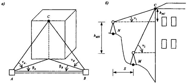2.16. При координатном способе координаты деформационных марок определяют из прямых угловых или линейно-угловых засечек с использованием тахеометра.