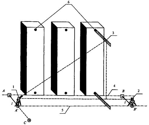 2.15. Для измерения кренов надземной части сооружения методом наклонного проектирования или методом координат в процессе его возведения вдоль выбранных поперечных и продольных осей с внешней стороны здания в верхней и нижней частях закрепляют триппельпризменные пластиковые отражатели или специальные рейки или марки (рис. 2.2). На местности в створе марок фиксируют постоянные точки стояния теодолита или электронного тахеометра [12].