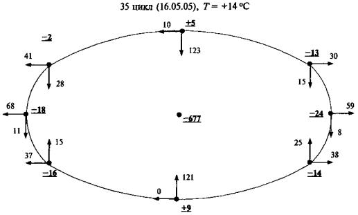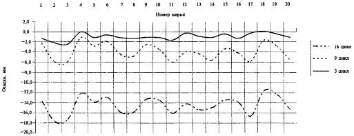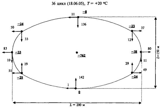 -25 - высотное смещение относительно 1 цикла (27.10.04), мм. Точность измерений ± |