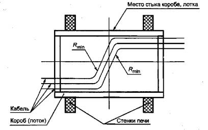 размеры испытательной печи должны быть не менее 3000×3000 4.2 Для имитации пожара в процессе испытания в испытательной печи должен быть создан стандартный температурный режим в соответствии с разделом 6 ГОСТ 30247.0. 4.3 Подготовка и проведение испытания 4.3.1 Образец представляет собой кабельную линию в проектном исполнении, которую устанавливают в испытательной печи в соответствии с технической документацией. При использовании коробов, лотков или труб образец устанавливают в испытательную печь горизонтально таким образом, чтобы в испытательной печи находилось максимальное количество стыков и элементов вентиляционных систем (при их наличии) в соответствии с технической документацией. Места прохода образца через стены печи заделывают в соответствии с технической документацией. 4.3.2 При проведении испытаний кабельных коробов, предназначенных для сохранения работоспособности кабельной линии в условиях пожара, в каждом образце прокладывают кабели согласно проектной документации. Если данная документация отсутствует, то прокладывают по одному отрезку следующих марок кабелей: - АВВГ 2×2,5 - 0,66 ГОСТ Р 53769; - АВВГ 4×10 - 1 ГОСТ Р 53769; - АКВВГ 14×2,5 - ГОСТ 1508. Кабели крепят металлическими скобами или другим крепежом в соответствии с технической документацией. Схема прокладки кабелей показана на рисунке А.1 (приложение А). 4.3.3