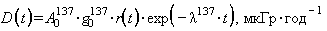 l137 - постоянная распада 137Cs, год-1; r(t) - функция, учитывающая уменьшение мощности дозы гамма-излучения 137Cs над целинной почвой из-за процесса естественной миграции: