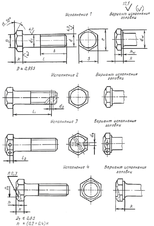 2. Конструкция и размеры болтов должны соответствовать указанным на