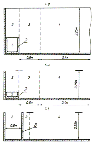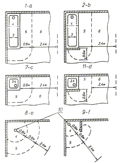 Requirements for special installations or Дата введения 1997-01-01 1 ОБЛАСТЬ ПРИМЕНЕНИЯНастоящий стандарт устанавливает специальные требования к электроустановкам в ванных и душевых помещениях и окружающих их зонах, где имеет место повышенный риск поражения людей электрическим током. Общие требования по обеспечению безопасности - по ГОСТ Р 50571.1 (часть 2). Эти требования не относятся к закрытым душевым кабинам, изготовленным заводским способом со своим душевым поддоном и канализацией, за исключением 701.53b. Примечание - Для ванных помещений, предназначенных для медицинских целей, могут применяться специальные требования. 2 НОРМАТИВНЫЕ ССЫЛКИВ настоящем стандарте использованы ссылки на следующие стандарты: ГОСТ Р 50571.1-93 Электроустановки зданий. Основные положения ГОСТ Р 50571.3-94 Электроустановки зданий. Часть 4. Требования по обеспечению безопасности. Защита от поражения электрическим током ГОСТ 7397.0-89 Выключатели для бытовых и аналогичных стационарных электрических установок. Общие технические условия 701 ВАННЫЕ И ДУШЕВЫЕ ПОМЕЩЕНИЯ701.3 Общие характеристики 701.32 Классификация зон Требования настоящего стандарта для обеспечения безопасности и выбора электрооборудования основываются на следующих размерах зон для ванных и душевых помещений (см. 701А и 701В). Зона 0 представляет собой внутренний объем ванны или душевого поддона. Зона 1 ограничивается: - внешней вертикальной плоскостью ванны или душевого поддона или вертикальной плоскостью на расстоянии 0,60 м от душевого разбрызгивателя - душа без поддона; - полом и горизонтальной плоскостью на расстоянии 2,25 м над полом. Зона 2 ограничивается: - внешней вертикальной плоскостью зоны 1 и параллельной ей вертикальной плоскостью на расстоянии 0,60 м; - полом и горизонтальной плоскостью на расстоянии 2,25 м над полом. Зона 3 ограничивается: - внешней вертикальной плоскостью зоны 2 и параллельной ей вертикальной плоскостью на расстоянии 2,40 м; - полом и горизонтальной плоскостью над полом на расстоянии 2,25 м. Размеры измеряются с учетом стен и стационарных перегородок (рисунки 701А и 701В). 701.4 Требования по обеспечению безопасности 701.41 Защита от поражения электрическим током Примечание - Защита штепсельных розеток - по 701.53а настоящего стандарта. 701.411.1.4.3 При применении в качестве защитной меры системы БСНН защиту от непосредственного прямого прикосновения к токоведущим частям, независимо от номинального напряжения, следует выполнять: - барьерами или оболочками, обеспечивающими, по крайней мере, степень защиты не ниже IP2X, или - изоляцией, способной выдержать испытательное напряжение переменного тока 500 В (действующее значение) в течение 1 мин. 701.413.1.6 Уравнивание потенциалов Дополнительное уравнивание потенциалов должно предусматривать соединение сторонних проводящих частей в зонах 1 - 3 с такими же частями, выходящими за пределы ванных и душевых помещений. 701.471 Применение защитных мер от поражения электрическим током 701.471.0 В зоне 0 допускается только защита с применением системы БСНН или ЗСНН при номинальном напряжении, не превышающим 12 В, причем источник питания системы БСНН или ЗСНН должен размещаться за пределами зоны 0. 701.471.1 Не допускаются меры защиты посредством барьеров (412.3 ГОСТ Р 50571.3) и размещение вне зоны досягаемости (412.4 ГОСТ Р 50571.3). 701.471.2 Не допускаются меры защиты посредством размещения электрооборудования в 