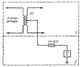 Дата введения 01.01.83 Настоящий стандарт распространяется на станционные и линейные установки сетей междугородной, городской, сельской и железнодорожной телефонно-телеграфной связи и устанавливает основные технические требования к схемам защиты установок проводной связи от опасных напряжений и токов, возникающих на линиях связи при грозовых разрядах, и других импульсных воздействиях, при опасном влиянии линий электропередачи и соприкосновении проводов линий связи с проводами линий электропередачи напряжением до 600 В, а также технического персонала и абонентов от акустических ударов. Стандарт предназначен для использования при проектировании сооружений связи и эксплуатации станционного и линейного существующего оборудования. Стандарт не распространяется: - на установки проводной связи энергосистем, линии которых обслуживаются как высоковольтные; - на установки проводной связи, расположенные внутри защитного заземляющего контура установок высокого напряжения или вне этого контура, если потенциал земли может достигать опасных значений; - на устройства сигнализации, централизации и блокировки (СЦБ) на железных дорогах. (Измененная редакция, Изм. № 1, 2). 1. ОБЩИЕ ПОЛОЖЕНИЯ(Измененная редакция, Изм. № 1). 1.2. Пересечение кабельных и воздушных линий связи с линиями электропередачи и электрифицированных железных дорог (ЭЖД) - по нормативно-технической документации (НТД). 1.3. Меры защиты линий проводной связи на пересечениях с контактными сетями трамвая и троллейбуса - по ГОСТ 67. 1.4. Значения электрического сопротивления заземляющих устройств для схем и приборов защиты - по ГОСТ 464. 1.5. Меры защиты установок проводной связи при наличии опасного напряжения на линиях связи от влияния линий электропередачи и ЭЖД - по НТД. 1.6. Искровые разрядники типов ИР-7, ИР-10, ИР-15 и ИР-20 должны быть выполнены из вязочной проволоки или с использованием коробок каскадной защиты (ККЗ). Искровые разрядники типов ИР-0,2 и ИР-0,3 должны быть выполнены только в коробках каскадной защиты или при помощи держателей разрядников Р-350. 1.7. В схемах защиты должны применяться термические катушки ТК-0,25 (ТК-0,3) или плавкие вставки типа ВП. (Измененная редакция, Изм. № 2). 1.8. Состояние приборов защиты, т.е. разрядное напряжение газонаполненных разрядников, расстояние (воздушный промежуток) между электродами искровых разрядников (ИР-0,2, ИР-0,3, ИР-7, ИР-10, ИР-15, ИР-20) должно проверяться: перед началом грозового периода (весной), после сильных грозовых разрядов (прямых ударов молнии) в линии связи и после производства различных ремонтных работ на линии и в защитных устройствах. 1.9. Установки (коммутаторы и другое оборудование) диспетчерской и директорской связи, имеющие линии связи, идущие по территории предприятия и вне территории предприятия, должны быть защищены согласно мерам защиты, указанным в разд. 3 или 4. 1.10. Разработка дополнительных устройств и схем защиты нового и импортного оборудования связи при необходимости должна проводиться разработчиком. Дополнительные устройства защиты должны входить в состав нового оборудования. (Измененная редакция, Изм. № 1). 1.11. Защита подземных кабелей связи от ударов молнии - по НТД. 1.12. Устанавливаемое на местных телефонных сетях импортное оборудование должно удовлетворять требованиям настоящего стандарта. (Введен дополнительно, Изм. 