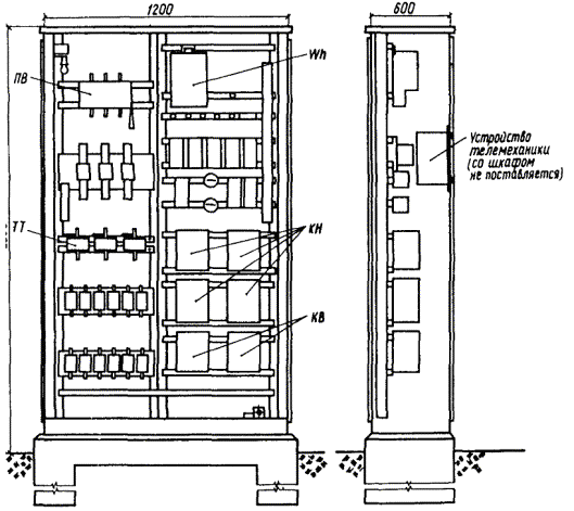 Черт. 1. Общий вид шкафа 2ШЩ1 (дверь и козырек не показаны)