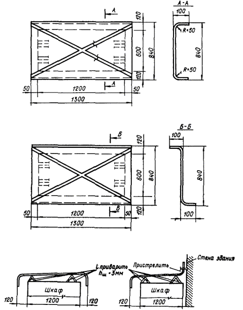 Черт. 3. Конструкция козырьков для шкафов 2ШЩ1 наружной установки Крепления козырьков на отдельно стоящем шкафу; при прислонном размещении шкафа ПРИЛОЖЕНИЕ 6ТЕХНИЧЕСКИЕ ПОКАЗАТЕЛИ АВТОНОМНЫХ ИСТОЧНИКОВ ЭЛЕКТРОПИТАНИЯ