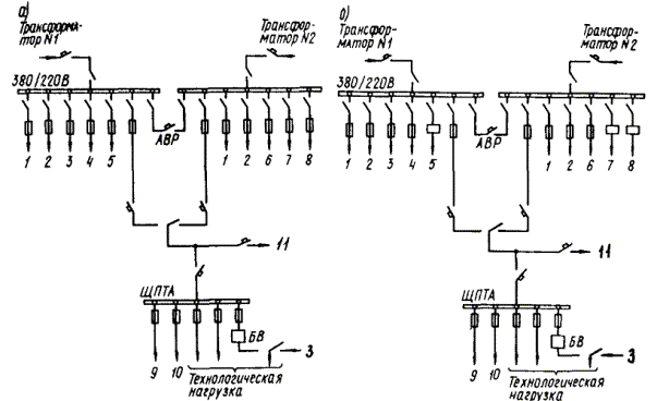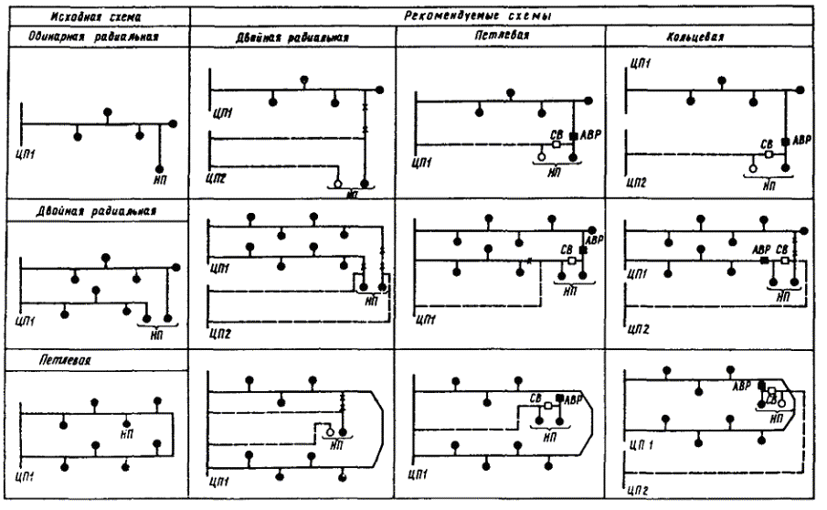 Черт. 1. Варианты преобразования действующих схем 6 - 10 кВ неотключаемых потребителей в рекомендуемые
