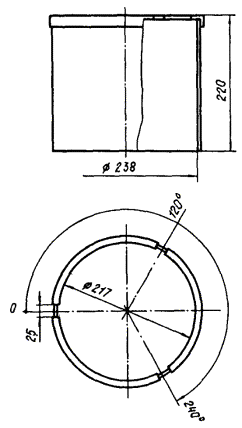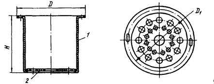 7. Светильник НСПО3-60/Р53-01 предназначен для общего освещения производственных помещений с повышенным содержанием пыли и повышенной относительной влажностью и работает от сети переменного тока напряжением 380/220 В частотой 50 Гц. Для работы светильника НСПО3-60/Р53-01 в режиме ПЗ при высоте установки 2 - 4 м необходимо: снять защитное стекло; поменять лампу номинальной мощности 60 Вт на лампу мощностью 15 Вт; поставить защитное стекло; на защитное стекло надеть экран типа Э-02 (черт. 6). Замену лампы и установку экрана следует производить при отключенном напряжении. 8. Светильник НСП22-500-121 предназначен для общего освещения производственных помещений с повышенным содержанием пыли и влажности и работает от сети переменного тока напряжением 380/220 В частотой 50 Гц. Для работы светильника в режиме ПЗ необходимо: заменить лампу номинальной мощности на лампу мощностью 15 Вт при высоте подвеса светильника не менее 3 м. Надеть затенитель типа З-03УЗ (см. черт. 5) на лампу; замену лампы и установку затенителя производить при отключенном напряжении; Черт. 6. Экран типа Э-02 при замене ламп с цоколем Е40/45 на лампы с цоколем Е27/25 необходимо устанавливать переходной патрон ПП-Е40/Е27П-01 по ТУ ОДТ.539.006-73. 9. Светильник НСП22-500-111 предназначен для общего освещения сырых и пыльных производственных помещений, пожароопасных помещений классов П-I и П-II и взрывоопасных помещений классов В-IIа и B-Iб и рассчитаны для работы в сети переменного тока напряжением 380/220 В частотой 50 Гц. Для работы светильника НСП22-500-111 в режиме ПЗ необходимо: открыть замок, снять защитное стекло, заменить лампу номинальной мощности на лампу мощностью 15 Вт при высоте подвеса светильника не менее 2,5 м; надеть затенитель типа З-03УЗ (см. черт. 5) на лампу, установить защитное стекло; замену лампы и установку затенителя производить при отключенном напряжении. При замене ламп с цоколем Е40/45 на лампы с цоколем Е27/25 необходимо устанавливать переходной патрон ПП-Е40/Е27П-01 по ТУ ОДТ.539.006-73. 10. Подвесные пыленепроницаемые светильники прямого света НСП11-100-431, НСП11-200-431 и рассеянного светораспределения НСП11-100.200-434 (без отражателя) предназначены для общего освещения сырых и пыльных производственных помещений с химически активной средой, пожароопасных помещений классов П-I и П-II и взрывоопасных помещений классов B-Iб и В-IIа. Светильники работают в сети переменного тока напряжением 380/220 В частотой 50 Гц. Для работы светильника НСП11-100, НСП11-200 в режиме ПЗ необходимо: повернуть замки против часовой стрелки; опустить колпак и сетку; заменить лампу номинальной мощности на лампу мощностью 15 Вт при высоте подвеса не менее 2,0 м для светильников НСП11-100-431, НСП11-100-434 и при высоте подвеса не менее 2,5 м для светильников НСП11-200-431, НСП11-200-434; установить затенитель Э-20УЗ (для светильников НСП11-100-431, НСП11-100-434) или З-30УЗ (для светильников НСП11-200-431, НСП11-200-434), состоящих из цилиндрического затенителя 1 и диска с отверстиями 2 (черт. 7). Замену ламп и установку затенителя следует производить при отключенном напряжении. 11. Светильник НСП20-500-121 предназначен для освещения производственных помещений промышленных предприятий с нормальными условиями среды, а также освещения пыльных помещений, безопасных в отношении взрыва, и работает от сети переменного тока напряжением 380/220 В частотой 50 Гц. Черт. 7. Габаритные, установочные размеры и масса затенителей 1 - зат
