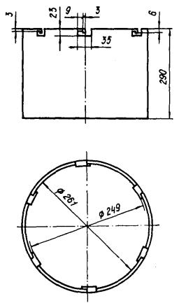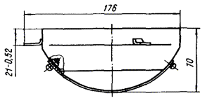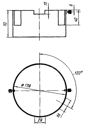 Черт. 8. Экран типа Э-05 Черт. 9. Экран типа Э-03 Экран типа Э-04 (черт. 10) надевают со стороны колпака так, чтобы винты были выше закатного кольца на светильнике и вручную затягивают винты до отказа. Замену ламп и установку экрана следует производить при отключенном напряжении. 15. Светильники ВЗГ/В4А-200 и ВЗГ/В4А-200М предназначены для общего освещения производственных взрывоопасных помещений классов B-I, B-Ia, B-Iб, В-II, В-IIa и наружных установок класса В-Iг с защитой от прямого попадания осколков, в которых возможно образование взрывоопасных смесей газов и паров с воздухом, отнесенных к 1, 2, 3 и 4 категориям групп А, Б, Г, а также взрывоопасных смесей пыли с воздухом. Светильники рассчитаны для работы от сети переменного тока напряжением 220 В частотой 50 Гц. Для работы светильников ВЗГ/В4А-200 и ВЗГ/В4А-200М в режиме ПЗ необходимо: отвинтить винты или болты; снять отражатель, защитную сетку, колпак и лампу номинальной мощности; установить лампу нужной мощности: 100 Вт (синяя лампа) при высоте установки светильника 2,5 м; 15 Вт - при высоте установки светильника 4 и 6 м; 40 Вт - при высоте установки светильника 9 м, 60 Вт - при высоте установок светильника 12 м. При высоте установки светильника 4 м и для обеспечения его работы в режиме ПЗ следует дополнительно использовать экран Э-04 (см. черт. 10). Для этого экран надевают на светильник со стороны колпака таким образом, чтобы винты экрана были выше кольца светильника, которое крепит колпак, и затягивают винты до отказа. Замену ламп и установку экрана необходимо производить при отключенном напряжении. 16. Потолочный взрывонепроницаемый светильник ВЗГ-100 предназначен для общего освещения взрывоопасных помещений классов B-I, В-Iа, и В-II на морских судах и промышленных предприятиях, где могут содержаться взрывоопасные смеси, отнесенные к 1, 2 и 3 категориям группы А, Б и Г по воспламеняемости. Для работы светильника ВЗГ-100 в режиме ПЗ необходимо: вывернуть болт и снять блок защитного стекла; заменить лампу номинальной мощности лампой мощностью 15 Вт; закрепить блок защитного стекла; вывернуть три винта, крепящие защитную сетку; надеть экран Э-06 (черт. 11), закрепить его скобы тремя винтами для крепления защитной сетки, экран дополнительно прикрепить к защитной сетке двумя винтами. Установку экрана следует производить при отключенном напряжении. Черт. 10. Экраны типов Э-04, Э-04 А Черт. 11. Экран типа Э-06 17. Потолочный взрывонепроницаемый светильник типа В4А-60 предназначен для общего освещения взрывоопасных помещений классов B-I, В-Ia и В-II на морских судах и промышленных предприятиях, где могут содержаться взрывоопасные смеси газов и паров с воздухом, отнесенные к 1, 2, 3 и 4 категориям группы А по воспламеняемости. Для работы светильника В4А-60 в режиме ПЗ необходимо: вывернуть болт и снять блок защитного стекла; заменить лампу номинальной мощности лампой мощностью 15 Вт; закрепить блок защитного стекла; вывернуть три винта, крепящие защитную сетку; надеть экран Э-08 (черт. 12), закрепить его скобы тремя винтами для крепления защитной сетки, экран дополнительно прикрепить к защитной сетке двумя винтами. Установку экрана необходимо производить при отключенном напряжении. Черт. 12. Экран типа Э-08 18. Светильник повышенной надежности против взрыва Н4БН-150 предназначен для общего освещения производственных взрывоопасных помещений классов B-Ia, B-Iб, В-II, В-IIа, 