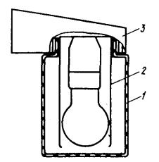Светильник рассчитан для работы в сети постоянного или переменного тока напряжением 12 В или 24 В, мощность лампы 10 Вт, тип лампы СМ13-10. Перед включением светильника необходимо тщательно проверить затяжку всех резьбовых соединений, убедиться в том, что нет механических повреждений корпуса, крышки и защитного стекла. Проверить наличие пломбы на головке одного из винтов, крепящих крышку к корпусу. Ремонт светильников должен производиться лицами, имеющими на это право и прошедшими специальный инструктаж. При эксплуатации светильника разрешается пользоваться только омедненным инструментом. Смена ламп должна производиться только при отключенном напряжении и после охлаждения колбы до безопасной температуры. Защитное стекло следует протирать мягкой тряпкой по мере загрязнения. При работе светильника в режиме ПЗ внутрь светильника устанавливается экран типа Э-10, ТУ ОДН.554.002-78 (черт. 14). Экран Э-10 предназначен для экранирования светового потока с целью снижения освещенности и обеспечения необходимого защитного угла. Запрещается: отвертывать винты, закрашенные красной краской или опломбированные, при включенном светильнике; повреждать при разборке и сборке светильника поверхность сочленения корпуса с крышкой по линии «взрыв»; обливать холодной водой стекло светильника при включенной лампе; производить механические удары, способные вызвать искры; эксплуатировать светильник при напряжении сети свыше ± 10 % номинального; применять лампу, мощность которой больше или меньше указанной для данного светильника; эксплуатировать светильник при наличии трещин на защитном стекле и с разбитым колпаком. 20. Светильник НЛО-18 ´ 100/Н-07УХЛ4 с лампой накаливания предназначен для общего освещения производственных помещений и общественных зданий. Светильник рассчитан для работы от сети переменного тока с номинальным напряжением 220 В частотой 50 Гц. Для эксплуатации светильника во внеквартирных помещениях в режиме ПЗ в его корпус устанавливается приспособление № 1 (черт. 15) с лампой накаливания мощностью 15 Вт. Для установки приспособления необходимо: снять рассеиватель; заменить лампу накаливания на 15 Вт; поставить приспособление и рассеиватель и закрепить их к корпусу светильника. 21. Светильник НПО-18 ´ 100/Р-01УХЛ4 с лампой накаливания предназначен для общего освещения производственных помещений, общественных зданий, вспомогательных помещений жилых домов. Светильник рассчитан для работы от сети переменного тока с номинальным напряжением 220 В частотой 50 Гц. Черт. 14. Экран типа Э-10 Черт. 15. Приспособление № 1 для светильников НПО-18 ´ 100/Н-07УХЛ4 1 - конус; 2 - кольцо; 3 - этикетка Для эксплуатации светильника во внеквартирных помещениях в режиме ПЗ в его корпус устанавливается приспособление № 2 (черт. 16) и лампа накаливания мощностью 15 Вт. Для установки приспособления необходимо: снять рассеиватель; заменить лампу накаливания на 15 Вт; поставить приспособление и рассеиватель; закрепить их к корпусу светильника. Черт. 16. Приспособление № 2 для светильника НПО-18 ´ 100/Р-01УХЛ4 1 - этикетка; 2 - кольцо; 3 - конус 22. Светильник НПО-18 ´ 60/Н-05УХЛ4 с лампой накаливания предназначен для общего освещения производственных помещений, общественных зданий, вспомогательных помещений жилых домов. Светильник рассчитан для работы от сети переменного тока с номинальным напряжени
