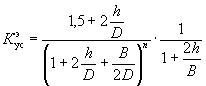 (где λI - относительная деформация образца грунта при расчетной нагрузке, отвечающая завершению первичной осадки); Hф - расчетный путь фильтрации воды, отжимаемой из слоя, принимаемый равным мощности слоя при одностороннем дренировании и половине мощности при двухстороннем дренировании. Таблица 20. Определение коэффициента KU