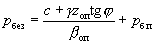 графики функций Рис. 8. Графический способ определения pбез а - при однородной толще; б - при слоистой толще 3.13. Упрощенные расчеты можно вести по формулам, представленным в табл. 18 и основанным на тех или иных допущениях. При этом следует учитывать, что получаемые решения содержат тем больший запас, чем проще формула и чем ниже она расположена в таблице. В связи с этим в ряде случаев может применяться метод последовательного уточнения расчета, при котором расчет начинают с наиболее простой формулы, переходя к более сложным только в том случае, если kначбез, вычисленный с использованием простой формулы, окажется меньше единицы. Таблица 18. Расчетные формулы для определения pбез