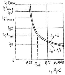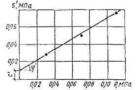 По графику tрасч = f(p) для h = hф / 2 = 1 см (см. рис. 1) устанавливаем величину уплотняющей нагрузки pтреб = 0,07 МПа (0,7 кгс/см2), отвечающую найденному времени tтреб = 37,6 мин. Величина временной нагрузки pприг = pтреб - pрасч = 0,07 - 0,05 = 0,02 МПа (0,2 кгс/см2). Графоаналитический способ. Для определения величины временной пригрузки используем приближенную зависимость T = f(p) T = (aλ + bλH2ф) / (p - pλ). (2) Определим параметры aλ, bλ, pλ. По кривой консолидации образца высотой 2 см под расчетной нагрузкой pрасч = 0,05 МПа (0,5 кгс/см2) при двухстороннем отжатии воды устанавливаем время, соответствующее λрасч = 0,3, tрасч = 650 мин. По кривой консолидации образца под нагрузкой p1 = 0,1 МПа (1 кгс/см2) при двухстороннем отжатии воды устанавливаем время, соответствующее λрасч = 0,3, t1 = 14 мин. Из уравнения находим