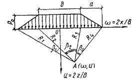 Рис. Тара для образцов слабых грунтов а - ящик для отбора монолитов; б - цилиндр для отбора монолитов. К стенкам ящика приварены две ручки для удобства переноса и извлечения ящика с монолитом из шурфа. Процесс отбора монолита с помощью металлического ящика. На устроенный выступ (на заданной глубине отбора) к узкой стенке шурфа ставят ящик, который залавливают в торфяной грунт таким образом, чтобы верх ящика оказался ниже поверхности грунта. Затем осторожно острым ножом или лопатой монолит с ящиком подрезают и извлекают из шурфа. Излишки торфа сверху и снизу срезают заподлицо со стенками ящика, кладут этикетку монолита и закрывают ящик крышками с уплотнительными прокладками. Образцы грунтов для отправки в лаборатории, расположенные на значительном расстоянии от места отбора образцов, упаковывают в деревянные ящики, вмещающие не более 30 кг. Образцы укладывают плотно, заполняя свободное пространство древесными опилками, стружками и т.п. Образцы хранят в помещении при температуре воздуха не ниже 2 и не выше 20 °С. При этом срок хранения, как правило, не должен превышать 30 сут, считая со дня отбора образца до производства лабораторных испытаний. ПРИЛОЖЕНИЕ 6ГРАФИКИ ДЛЯ ОПРЕДЕЛЕНИЯ НАПРЯЖЕНИЙ В ОСНОВАНИИ НАСЫПИ ТРАПЕЦЕИДАЛЬНОГО ОЧЕРТАНИЯГрафики (рис. 1 - 15) позволяют определить величину большего и меньшего главных напряжений, возникающих в заданной точке грунтового массива от нагрузки, приложенной к поверхности и распределенной по закону равнобочной трапеции. Рис. 1. Расчетная схема нагрузки