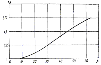 Рис. 3. График зависимости коэффициента jb от угла наклона пульпопровода b, град При этом в табл. 13 угол сектора максимального износа jм определяется по формуле jм = КjvpPl-3,6pjb/(rт0,5vкр), (54) где Кj - эмпирический коэффициент (Кj = 2000 при d < 0,5 мм; Кj = 1600 при d > 0,5 - 1,5 мм); jb - коэффициент угла наклона пульпопровода, определяется по графику, приведенному на рис. 3. 4.5. Уточнение толщины стенок пульпопровода с учетом условий эксплуатации и коррозии стенок dу определяется по формуле dу = Куdр(1 + 0,1dм), (55) где Ку - коэффициент, учитывающий условия эксплуатации системы гидротранспорта; для проектируемых систем принимается для труб: из малоуглеродистых сталей, часто находящихся в резерве без консервации - 1,35; из коррозионно-стойких материалов или работающих постоянно и находящихся в резерве в состоянии консервации независимо от материала труб - 1; dм - минимально допустимая из условий прочности толщина стенок труб, определяемая по СНиП 2.05.06-85*. Полученное по формуле (55) значение dу округляется до ближайшей стандартной толщины d в соответствии с действующим ГОСТом на трубопроводы. Если значение dу превышает максимальную толщину стенки трубопровода, предусмотренную ГОСТом, оно уменьшается до ближайшей величины, выбираемой из стандартного ряда толщин. 4.6. Технический ресурс пульпопровода Т (чистое время работы до предельного износа за весь период эксплуатации) определяется по формуле Т = (d - dм)Т1nyKd/Ky. (56) 4.7. Фактический срок службы пульпопровода до предельного износа Tф, лет, определяется по формуле Tф = Т + tп, (57) где tп - суммарное время всех простоев пульпопровода до истечения ресурса Т, лет. 4.8. Время работы пульпопровода до очередного профилактического поворачивания Тп, лет, определяется по формуле Тп = Т/п. (58) 4.9. Ориентировочный срок службы криволинейных участков труб пульпопровода Тк при vp £ 1,25vкр следует определять по формуле