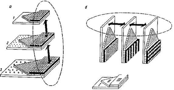 1.7. Кооперация учебных заведений на производстве в целях наиболее эффективного использования (во времени) материальной базы может осуществляться по двум основным направлениям. Во-первых, объединение по принципу наибольшей общности помещений. Так объединяются здания близких по набору помещений учебных заведений, что дает наибольший экономический эффект. Во-вторых, по принципу общего руководства учебными заведениями одного предприятия. Это более доступно в смысле кооперации материальной базы. В учебные центры предприятий в зависимости от размещения целесообразно включать: при размещении в городе (при наличии санитарной защитной зоны) - дневные профессиональные учебные заведения, учебные заведения повышения квалификации с отрывом от производства; при размещении на предзаводской площади - учебно-курсовой комбинат; школу рабочей молодежи; профтехучилище; филиалы, отделения или факультеты техникума и вуза; выпускающую кафедру вуза; возможно включение в состав учебного центра межшкольных мастерских и института повышения квалификации. Учебные центры промышленных узлов должны формироваться по аналогии с учебными центрами промышленных предприятий, но без подразделений курсовой сети, которые следует размещать при отдельных предприятиях. В учебных центрах производственных фирм, объединений, имеющих предприятия в разных городах, должен предусматриваться учебно-курсовой комбинат (обучение с отрывом от производства): техникум, завод-втуз, институт повышения квалификации. 1.8. Учебные комплексы, создаваемые путем кооперирования учебных заведений одного уровня обучения, но, как правило, разных отраслей производства, следует называть одноуровневыми. Ввиду разнохарактерности производственной базы комплексов ПТУ или техникумов в них можно объединить только группу наименее специфических общетеоретических помещений или совместно использовать помещения вспомогательного и обслуживающего характера (см. рис.2). Рис. 3. Принципы функционального объединения учебных комплексов (внутреннее объединение). а - учебные заведения одной отрасли (предприятия); б - учебные заведения одного уровня обучения; 1 - профтехучилище; 2 - техникум; 3 - вуз; I - группа общетеоретических и общетехнических помещений; II - группа специализированных учебных помещений; III - группа помещений учебных мастерских и спецлабораторий 1.9. При проектировании учебных комплексов или центров вместимость каждого учебного заведения может соответствовать номенклатурным показателям: учебные комбинаты: 200, 400, 600, 900 ученических мест; профтехучилища: 270, 360, 540, 720, 960, 1440 учащихся; техникумы: 540, 720, 960, 1440, 1920 учащихся. При узкой отраслевой специализации зданий агропромышленных хозяйств (комплексах животноводческих предприятий промышленного типа) максимальная вместимость агропромышленных учебных заведений - учебных центров и комплексов - 540 учащихся. 1.10. Величина учебных комплексов желательна в пределах от 1500 до 6000 учащихся, хотя для обслуживающих отраслей она может быть и ниже. Наряду с преимуществами концентрации учебных заведений следует учитывать отрицательные моменты, сопутствующие дальнейшему укрупнению учебных комплексов. 1.11. Состав и количество помещений в учебном комплексе для учебно-теоретических и для учебно-практических занятий определяются технологическим ра