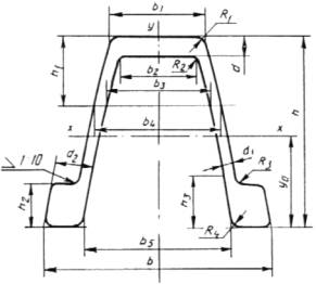 3. Размеры профиля, площадь поперечного сечения, линейная плотность и справочные значения для осей приведены в табл. 1. Таблица 1