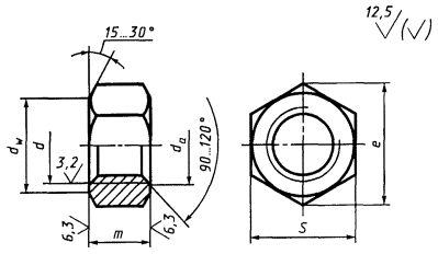 Дата введения 01.01.72 1. Настоящий стандарт распространяется на шестигранные гайки с уменьшенным размером «под ключ» класса точности А с диаметром резьбы от 8 до 48 мм. (Измененная редакция, Изм. № 4). 2. Конструкция и размеры гаек должны соответствовать указанным на чертеже и в таблице. (Измененная редакция, Изм. № 2-7). (Измененная редакция, Изм. № 2, 4). 3а. Не установленные настоящим стандартом допуски размеров, отклонений формы и расположения поверхностей и методы контроля - по ГОСТ 1759.1. 3б. Допустимые дефекты поверхностей гаек и методы контроля - по ГОСТ 1759.3. 3а, 3б. (Введены дополнительно, Изм. № 5). 4. (Исключен, Изм. № 5). 5. Технические требования - по ГОСТ 1759.0. 6. (Исключен, Изм. № 2). 7. Масса гаек указана в приложении 1. 8. (Исключен, Изм. № 4). мм