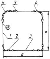3 Постановлением Государственного комитета Российской Федерации по стандартизации, метрологии и сертификации от 4 сентября 1997 г. № 298 межгосударственный стандарт ГОСТ 14110-97 введен в действие непосредственно в качестве государственного стандарта Российской федерации с 1 января 1998 г. 4 ВЗАМЕН ГОСТ 14110-80 ГОСТ 14110-97 МЕЖГОСУДАРСТВЕННЫЙ СТАНДАРТ СТРОПЫ МНОГООБОРОТНЫЕ ПОЛУЖЕСТКИЕ Технические условия Reusable semirigid slings. Specifications Дата введения 1998-01-01 1 ОБЛАСТЬ ПРИМЕНЕНИЯНастоящий стандарт распространяется на многооборотные полужесткие стропы (далее - стропы) для пакетирования, погрузки и выгрузки круглых и колотых лесоматериалов и пилопродукции при транспортировании их в прямом и смешанном сообщении железнодорожным, водным и автомобильным транспортом климатического исполнения У, категории размещения I по ГОСТ 15150. 2 НОРМАТИВНЫЕ ССЫЛКИВ настоящем стандарте использованы ссылки на следующие стандарты: ГОСТ 2.601-95 ЕСКД. Эксплуатационные документы ГОСТ 8.051-81 ГСИ. Погрешности, допускаемые при измерении линейных размеров до 500 мм ГОСТ 9.032-74 ЕСКД. Покрытия лакокрасочные. Группы, технические требования и обозначения ГОСТ 12.3.009-76 ССБТ. Работы погрузочно-разгрузочные. Общие требования безопасности ГОСТ 380-94 Сталь углеродистая обыкновенного качества. Марки ГОСТ 535-88 Прокат сортовой и фасонный из стали углеродистой обыкновенного качества. Общие технические условия ГОСТ 1709-75 Лаки каменноугольные. Технические условия ГОСТ 2590-88 Прокат стальной горячекатаный круглый. Сортамент ГОСТ 3242-79 Соединения сварные. Методы контроля качества ГОСТ 3282-74 Проволока стальная низкоуглеродистая общего назначения. Технические условия ГОСТ 5631-79 Лак БТ-577 и краска БТ-177. Технические условия ГОСТ 9466-75 Электроды покрытые металлические для ручной дуговой сварки конструкционных и теплоустойчивых сталей. Типы ГОСТ 14192-96 Маркировка грузов ГОСТ 15150-69 Машины, приборы и другие технические изделия. Исполнения для различных климатических районов. Категории условия эксплуатации, хранения и транспортирования в части воздействия климатических факторов внешней среды ГОСТ 16369-96 Пакеты транспортные лесоматериалов. Размеры ГОСТ 26663-85 Пакеты транспортные. Формирование на плоских поддонах. Общие технические требования 3 КЛАССИФИКАЦИЯ, ОСНОВНЫЕ ПАРАМЕТРЫ И РАЗМЕРЫ3.1 Типы и основные параметры строп в зависимости от вида пакетируемой продукции должны соответствовать указанным на рисунках 1 - 4 и в таблице 1. Тип 01 Рисунок 1 Тип 02