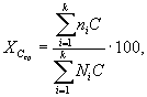 где nC - число квадратов с ржавчиной; NC - общее число квадратов на поверхности образца. Среднюю степень поражения (