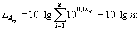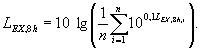 где Те - продолжительность воздействия шума в течение рабочей смены, ч; Т0 = 8 ч. (Введен дополнительно, Изм. № 1). 4.4.2. Если для каждого из п рабочих дней определены уровни 8-часового воздействия шума LEX,8h,i, дБА, то LEX,8h, дБА, по совокупности дней рассчитывают по формуле
