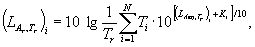где Ti - интервал времени воздействия тонального и импульсного шума (см. п. 5);