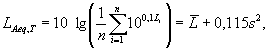 где N - число дней. Приложение 6 (Введено дополнительно, Изм. № 1). ПРИЛОЖЕНИЕ 7Справочное СТЕПЕНИ ТОЧНОСТИ ИЗМЕРЕНИЯ ШУМА1. Оценка эквивалентного уровня звука LAeq,Т 1.1. Если выполнен ряд (объем выборки n) повторных независимых измерений эквивалентного уровня звука, обозначенных в формуле (1) Li, дБА, то в качестве результата принимают значение LАeq,T, дБА, рассчитываемое по формуле