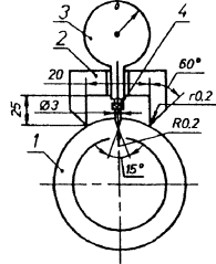 1 - труба; 2- специальная призма (L = 30); 3 - индикатор ИЧ-02 ГОСТ 577; 4 - специальный наконечник