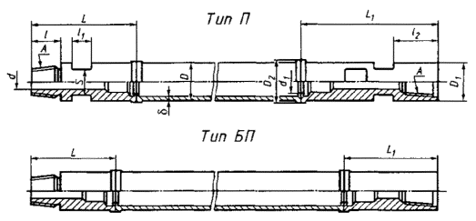 - частота вращения колонны бурильных труб - (1,5 - 2,0)×104×D-l об/мин; - осевая нагрузка на породоразрушающий инструмент - 7,8-19,6 кН; - запас прочности по знакопеременному изгибу 1,2 - 1,5 (см. приложение А); - промывочная жидкость - вода, глинистый раствор. - вид нагружения - изнашивание путем полного многократного свинчивания-развинчивания труборазворотом; - среда изнашивания - глинистый раствор с запесоченностью 5 %, песок кварцевый зернистостью 0,1 - 0,2 мм; - масса имитатора свечи, воздействующая на резьбу, соответствует массе свечи длиной 12 м для труб диаметром 43 и 55 мм и длиной 18 м - для труб диаметром 63,5; 70 и 85 мм; - угол перекоса осей свинчиваемых деталей замка - 1° - 2°. 4.2.3 Средняя наработка до отказа тела трубы, сварного и резьбового соединений должна быть не менее 5×106 циклов знакопеременного изгиба, установленных для следующих условий: - вид нагружения - усталостное воздействие путем знакопеременного консольного изгиба с вращением; - частота вращения нагружаемого элемента - 1440 об/мин; - момент затяжки резьбового соединения перед началом нагружения - согласно таблице 6; - изгибающий момент при нагружении элементов - согласно таблице 6. 4.2.4 В качестве критериев отказов бурильных труб принимают: - уменьшение наружного диаметра тела трубы, сварного и резьбового соединений до значений, приведенных в таблице 6; - уменьшение числа оборотов, необходимых для полного свинчивания резьбы, до следующих значений для: трубы диаметром 43 мм - 2,0 оборота; трубы диаметром 55; 63,5; 70 и 85 мм - 2,5 оборота; - поломка по телу трубы, сварному и резьбовому соединений. 4.3.1 Трубы следует поставлять партиями. Каждую партию труб сопровождают руководством по эксплуатации, утвержденным в установленном порядке. Маркировку наносят ударным способом в следующей последовательности: - товарный знак предприятия-изготовителя; - условное обозначение трубы; - месяц и год выпуска (последние две цифры). 4.4.2 На поверхности приварных ниппелей (рядом с маркировкой по 4.4.1) каждой трубы с левыми резьбами должны быть проточены опознавательные пояски шириной 5+1,0 мм и глубиной 1+0,5 мм. 4.5.1 Резьбы деталей приварных замков должны быть защищены от механических повреждений колпачками и пробками или иными гарантирующими их сохранность способами. 4.5.2 Перед упаковкой наружные и внутренние поверхности приварных замков должны быть законсервированы. Вариант защиты при поставке труб ВЗ-1 по ГОСТ 9.014. 4.5.3 Упаковку труб следует проводить по категории КУ-0 в соответствии с ГОСТ 23170. 4.5.4 Транспортную упаковку следует производить в пакеты в соответствии с ГОСТ 10692 массой до 3500 кг. Пакеты труб следует увязывать не менее чем в трех местах в поперечном сечении и не менее чем в два витка проволокой диаметром 6 мм по ГОСТ 3282. В одном пакете должны быть трубы одной партии. 5 Правила приемки5.1 Трубы принимают партиями, выполненными по единой технологии. Каждая партия должна состоять из труб одного типа, размера, вида упрочнения и сопровождаться одним документом, удостоверяющим соответствие ее качества требованиям стандарта и содержащим: - наименование предприятия-изготовителя; - наименование предприятия-потребителя; - тип трубы; - размер трубы; - вид упрочнения; - длину трубы в метрах; - количество труб в партии; - массу партии; - результаты механических и технологических испытаний; - направление резьбы при изготовлении труб с левой ре