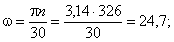 угловую скорость вращения w, рад/с: