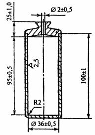 Рисунок 3 - Пикнометр 6.2 Подготовка и проведение испытания6.2.1 Определяют массу чистого сухого пикнометра. 6.2.2 Цементное тесто готовят по 3.13.2. 6.2.3 Заполняют цементным тестом пикнометр и закрывают его крышкой, при этом цементное тесто должно заполнить канал в крышке пикнометра. Избыток теста, выступивший из отверстия в крышке, удаляют влажной тканью. 6.2.4 Определяют массу пикнометра, заполненного цементным тестом. 6.3 Обработка результатовПлотность цементного теста rц, г/см3, вычисляют по формуле