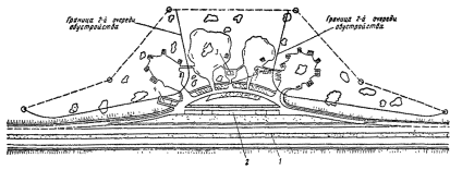 1 Без АЗС Примечания 1. При определении ориентировочной потребной площади под комбинации отдельных комплексов, не приведенных в данной таблице, следует набирать ее по отдельным комплексам с учетом обеспечения потребных санитарных разрывов между зданиями, пожарных проездов и пп. 3-5 настоящих примечаний. 2. Площадь, указанная в числителе, относится к производственной и жилой зоне ДУ, ДРП; в знаменателе - только производственная ДУ, ДРП. 3. При водоснабжении комплекса от проектируемой артезианской скважины добавлять 1га к указанному комплексу. 4. При сороге канализационных стоков на проектируемые очистные сооружения к указанной площади добавлять от 0,4 до 1,0га в зависимости от типа очистных сооружений. 5. При проектировании котельной к комплексу добавлять от 0,4 до 0,7га. |