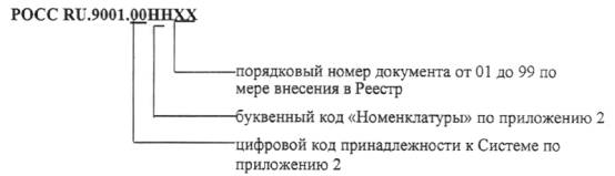 Приложение 4.РЕКВИЗИТЫ И ДОКУМЕНТЫ, ИСПОЛЬЗУЕМЫЕ ПРИ РЕГИСТРАЦИИ НОМЕНКЛАТУРЫ ПРОДУКЦИИ И УСЛУГ, ПОДЛЕЖАЩИХ ОБЯЗАТЕЛЬНОЙ СЕРТИФИКАЦИИ 1. Структура регистрационного номера в Реестре