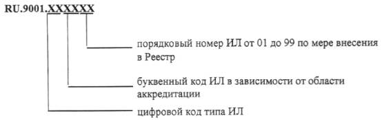 Приложение 9.РЕКВИЗИТЫ И ДОКУМЕНТЫ, ИСПОЛЬЗУЕМЫЕ ПРИ РЕГИСТРАЦИИ ИСПЫТАТЕЛЬНЫХ ЛАБОРАТОРИЙ (ЦЕНТРОВ) 1. Структура регистрационного номера в Реестре