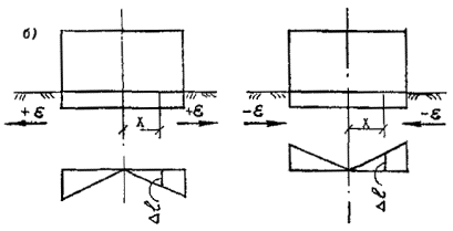 Определение нагрузок на ленточные фундаменты от горизонтальных деформаций грунта основания8.19 Суммарные нагрузки на ленточный фундамент жесткой конструкции, вызванные горизонтальными деформациями грунта основания (рис. 3), определяются по формуле где