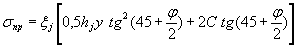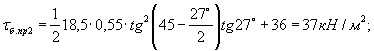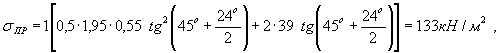 Значение Предельное напряжение сжатия на боковом поверхности фундамента от бокового пассивного давления грунта вычисляем по формуле (41)