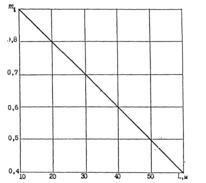 Нагрузка m1 - коэффициент условий работы, учитывающий неполной развитие силы трения по шву скольжения, принимается по графику рис. 5 в зависимости от длины отсека;